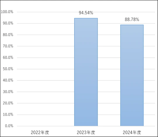 リスクレベルが「中」以上の手術を施行した患者の肺血栓塞栓症の予防策の実施率